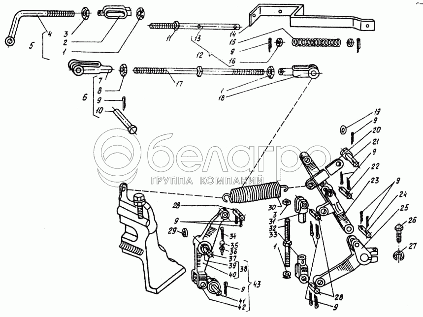 Каталог запасных частей к технике: ВгТЗ ДТ-75МВ. Управление трактором. Тяга КПП