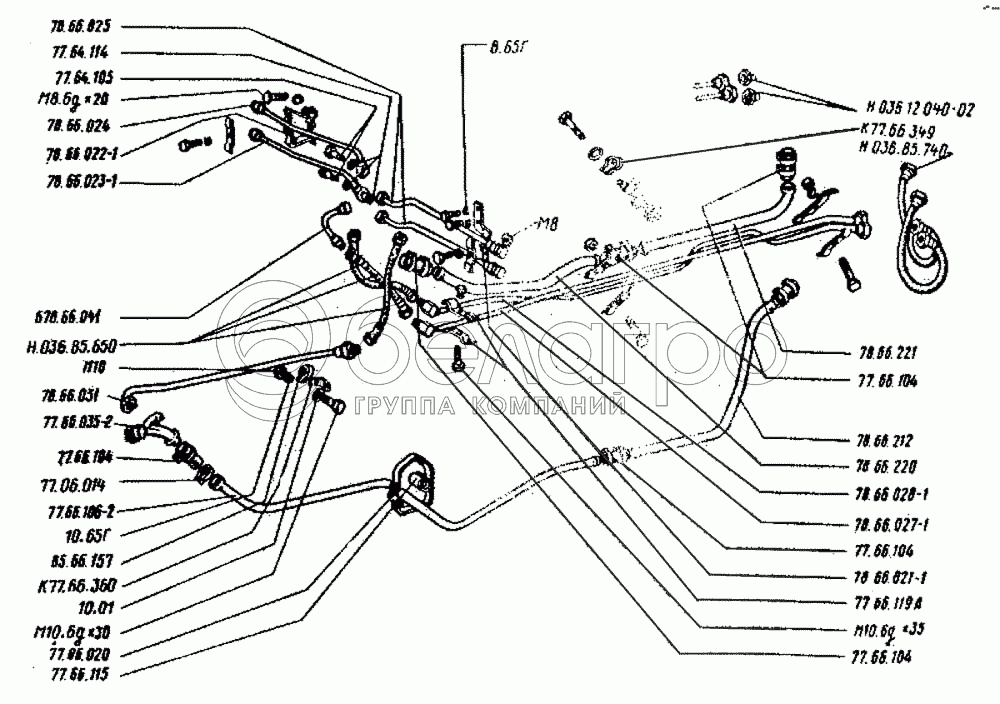 Каталог запасных частей к технике: ВгТЗ ДТ-75Н. Маслопроводы гидросистемы
