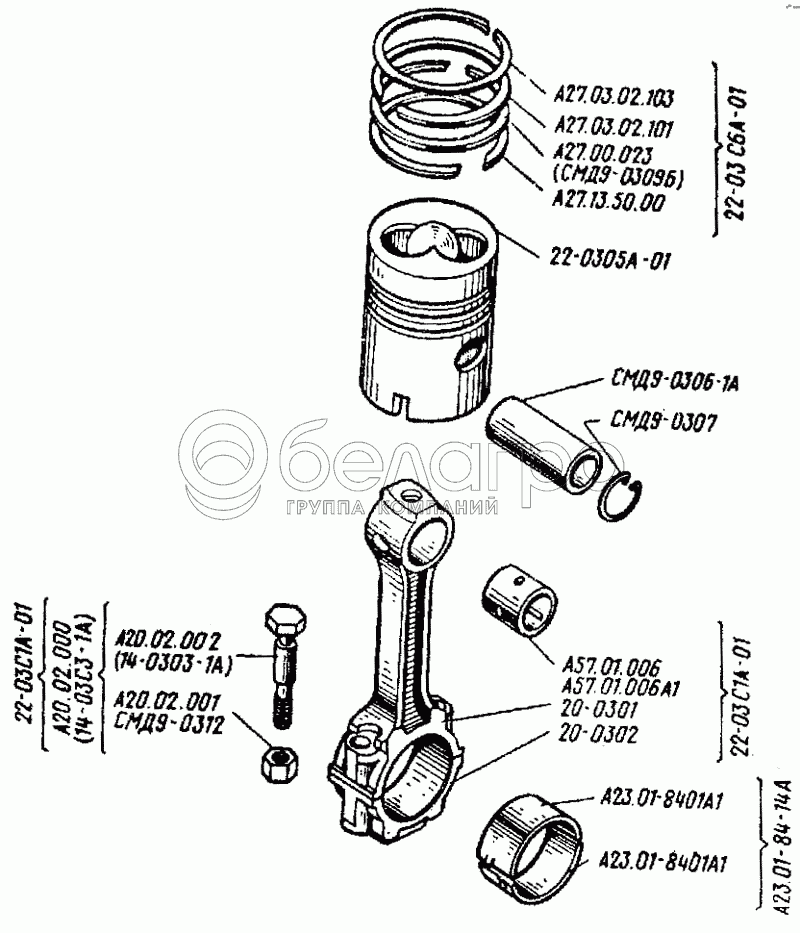 Каталог запасных частей к технике: ВгТЗ ДТ-75Н. Поршень с шатуном