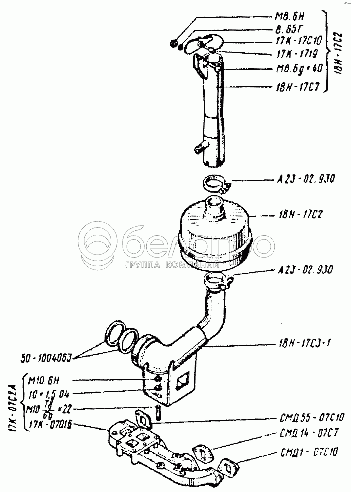 Каталог запасных частей к технике: ВгТЗ ДТ-75Н. Система выхлопная