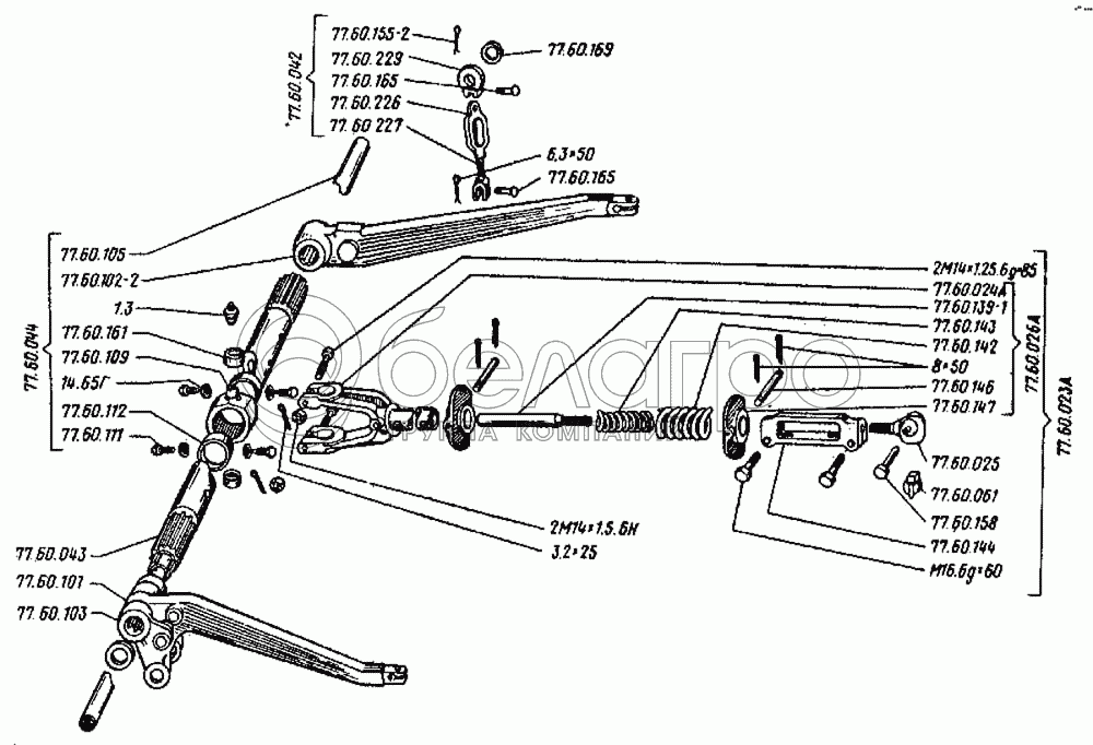 Каталог запасных частей к технике: ВгТЗ ДТ-75Н. Устройство навесное заднее. Подъемник и стяжка