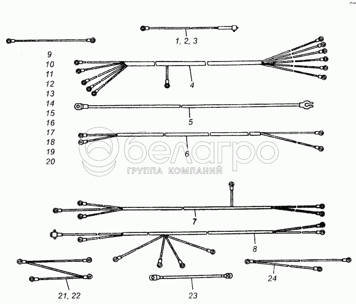 Каталог запасных частей к технике: ВгТЗ ДТ-75В, ДТ-75БВ, ДТ75Н. Электрооборудование. Пучки проводов