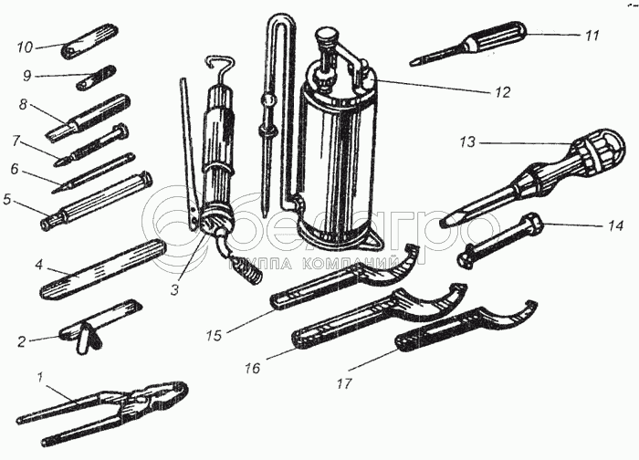 Каталог запасных частей к технике: ВгТЗ ДТ-75В, ДТ-75БВ, ДТ75Н. Комплект инструмента и принадлежности