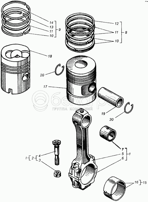 Каталог запасных частей к технике: ВгТЗ ДТ-75В, ДТ-75БВ, ДТ75Н. Поршень с шатуном