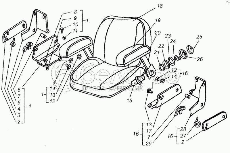 Каталог запасных частей к технике: ВгТЗ ДТ-75В, ДТ-75БВ, ДТ75Н. Сиденье. Сборка сиденья