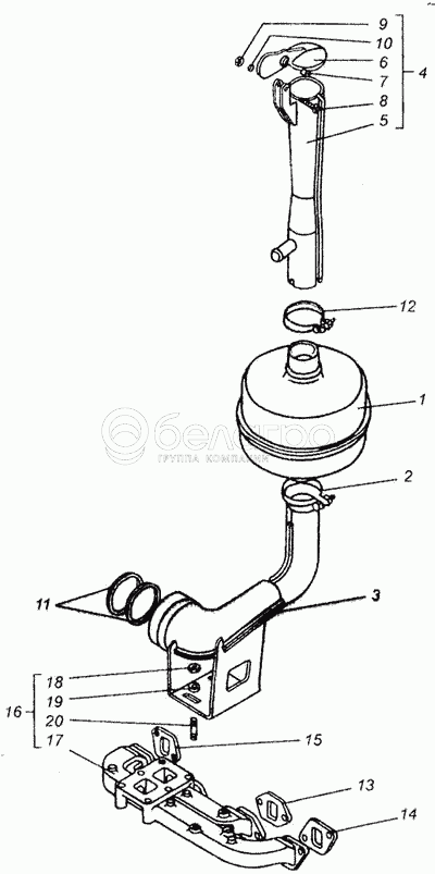 Каталог запасных частей к технике: ВгТЗ ДТ-75В, ДТ-75БВ, ДТ75Н. Выхлопная система дизеля СМД-18Н