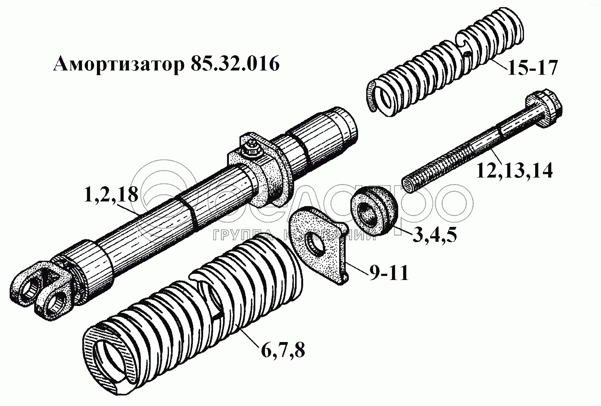Каталог запасных частей к технике: ВгТЗ ВТ-100Д. Амортизатор 85.32.016