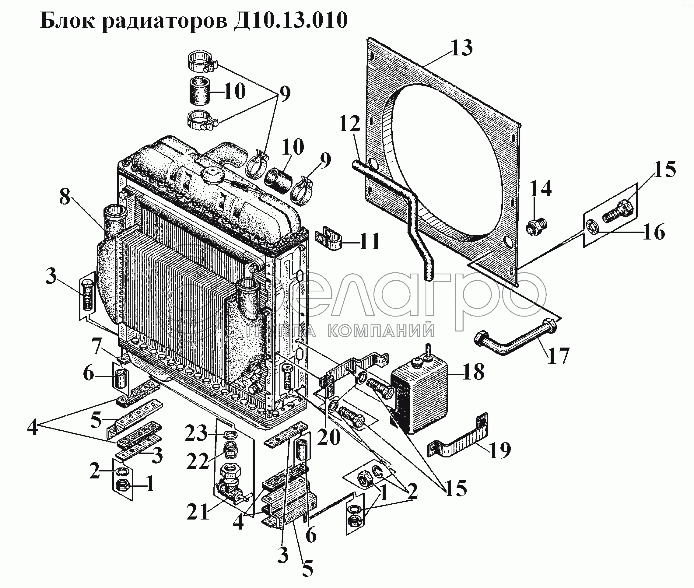 Каталог запасных частей к технике: ВгТЗ ВТ-100Д. Блок радиаторов Д10.13.010