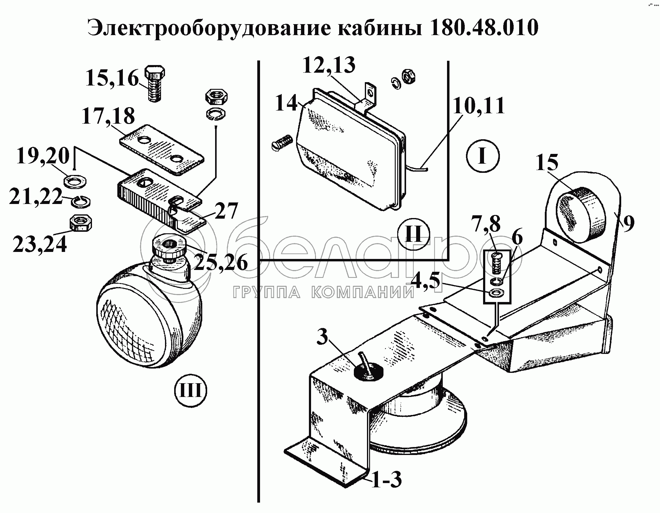 Каталог запасных частей к технике: ВгТЗ ВТ-100Д. Электрооборудование кабины 180.48.010 (2)