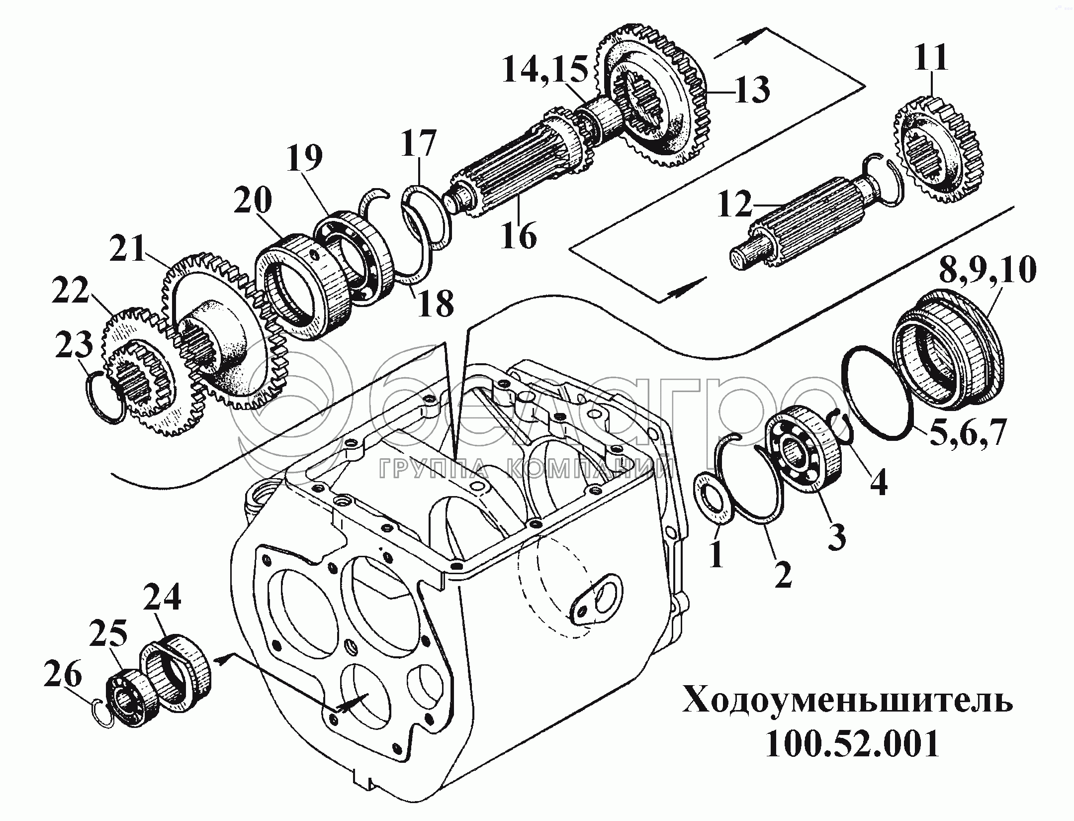 Каталог запасных частей к технике: ВгТЗ ВТ-100Д. Ходоуменьшитель 100.52.001 (2)