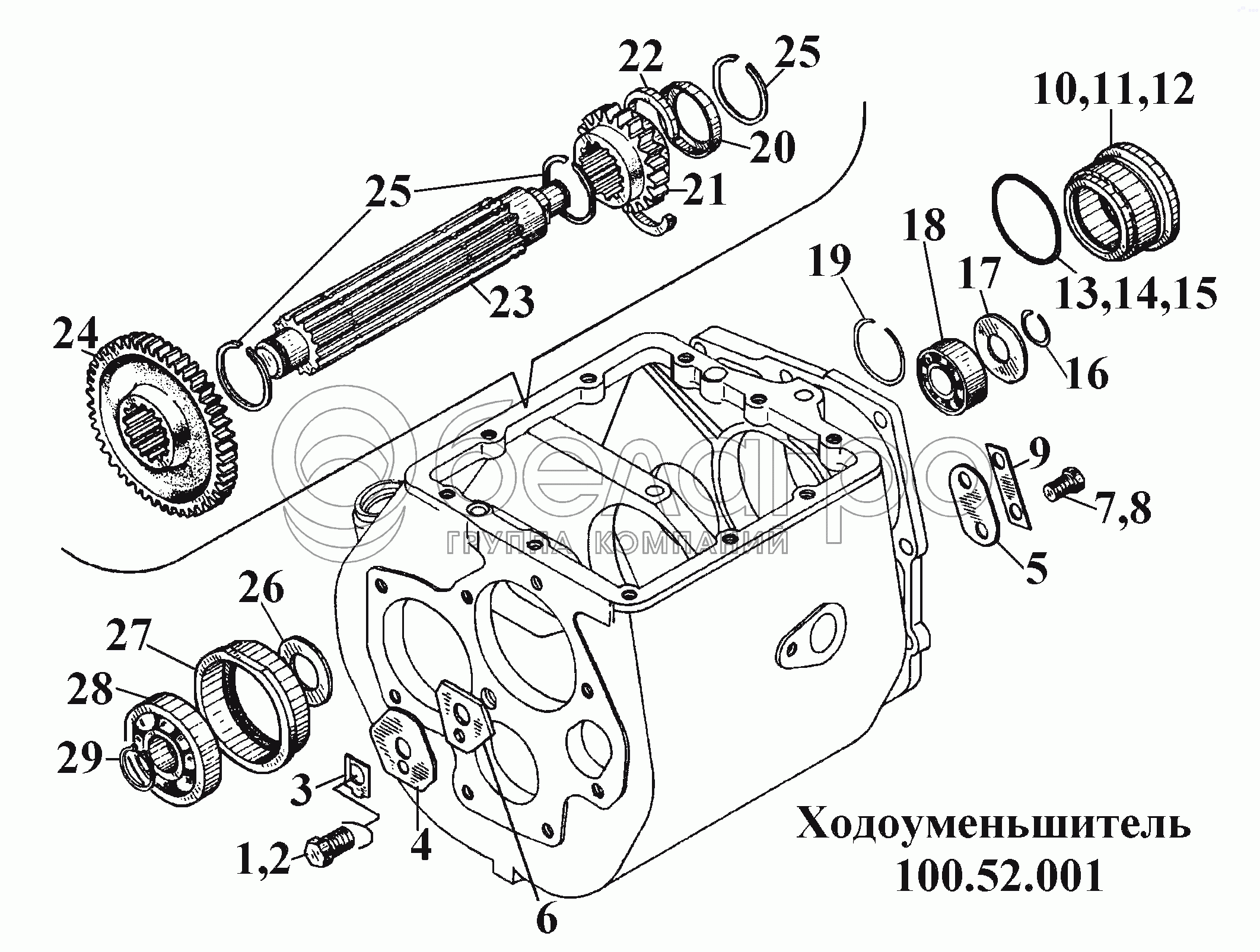 Каталог запасных частей к технике: ВгТЗ ВТ-100Д. Ходоуменьшитель 100.52.001 (3)