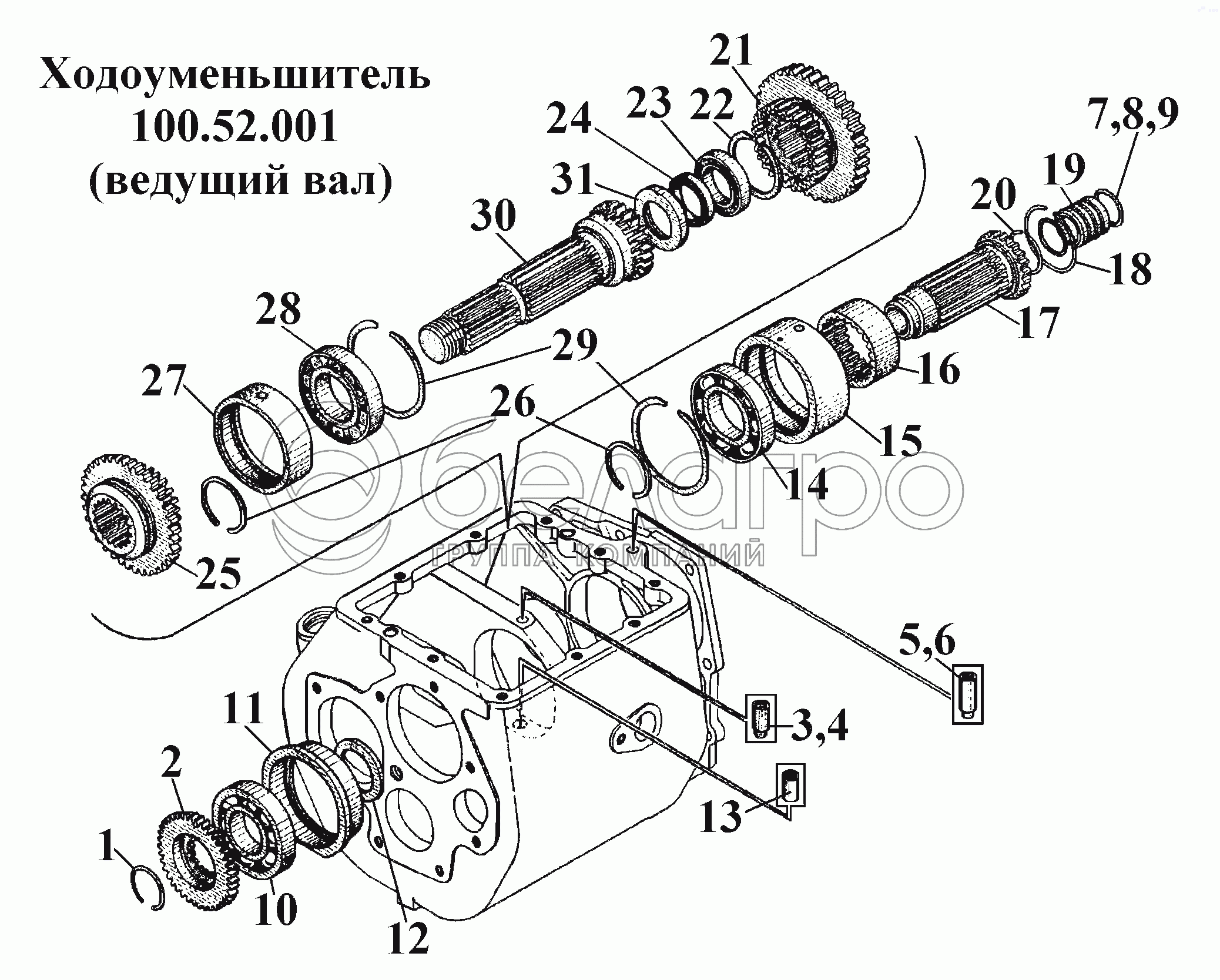 Каталог запасных частей к технике: ВгТЗ ВТ-100Д. Ходоуменьшитель 100.52.001 (ведущий вал)