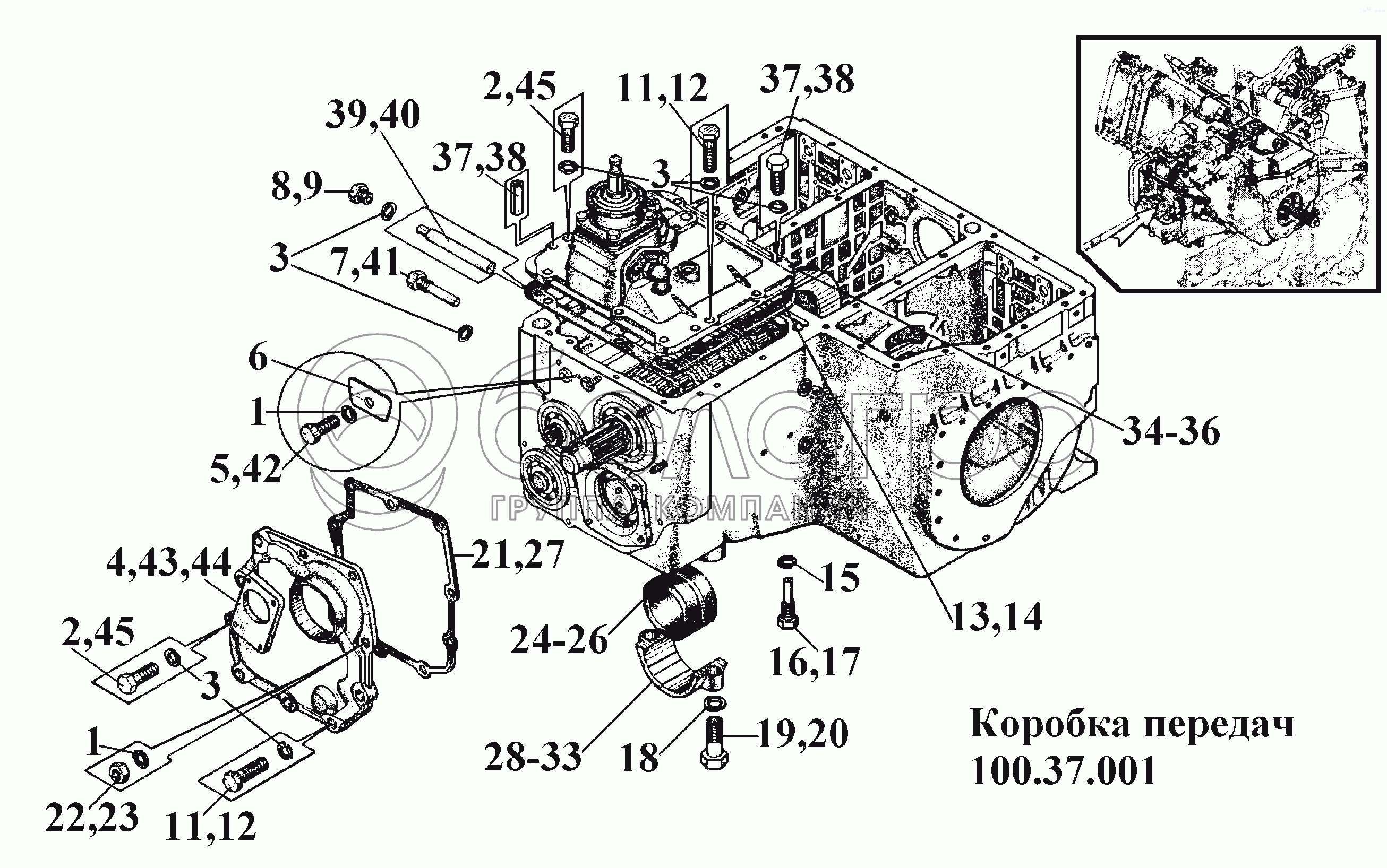 Каталог запасных частей к технике: ВгТЗ ВТ-100Д. Коробка передач 100.37.001 (1)