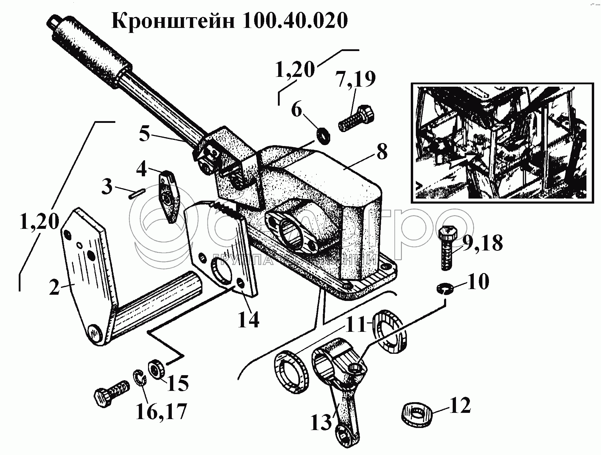 Каталог запасных частей к технике: ВгТЗ ВТ-100Д. Кронштейн 100.40.020
