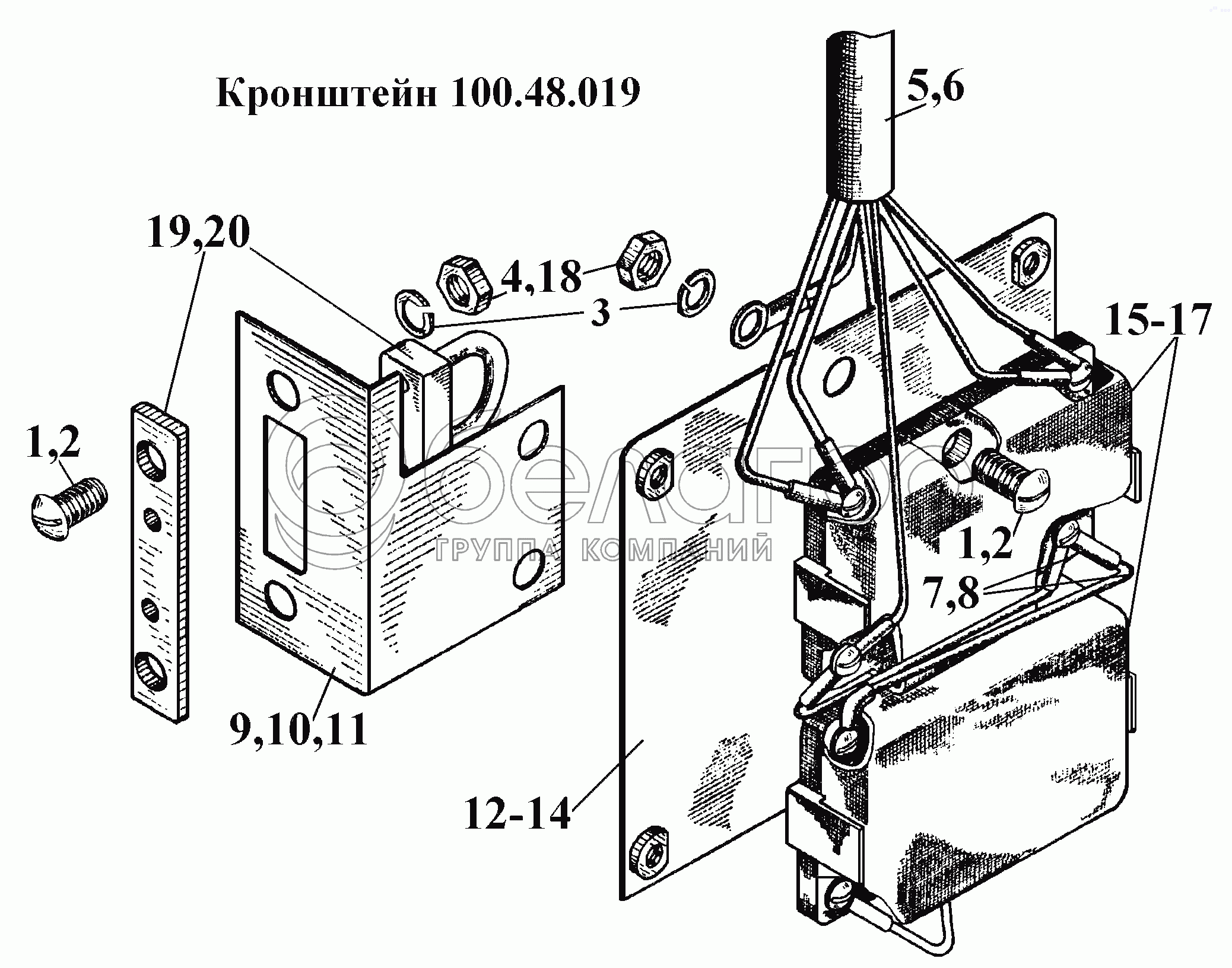 Каталог запасных частей к технике: ВгТЗ ВТ-100Д. Кронштейн 100.48.019
