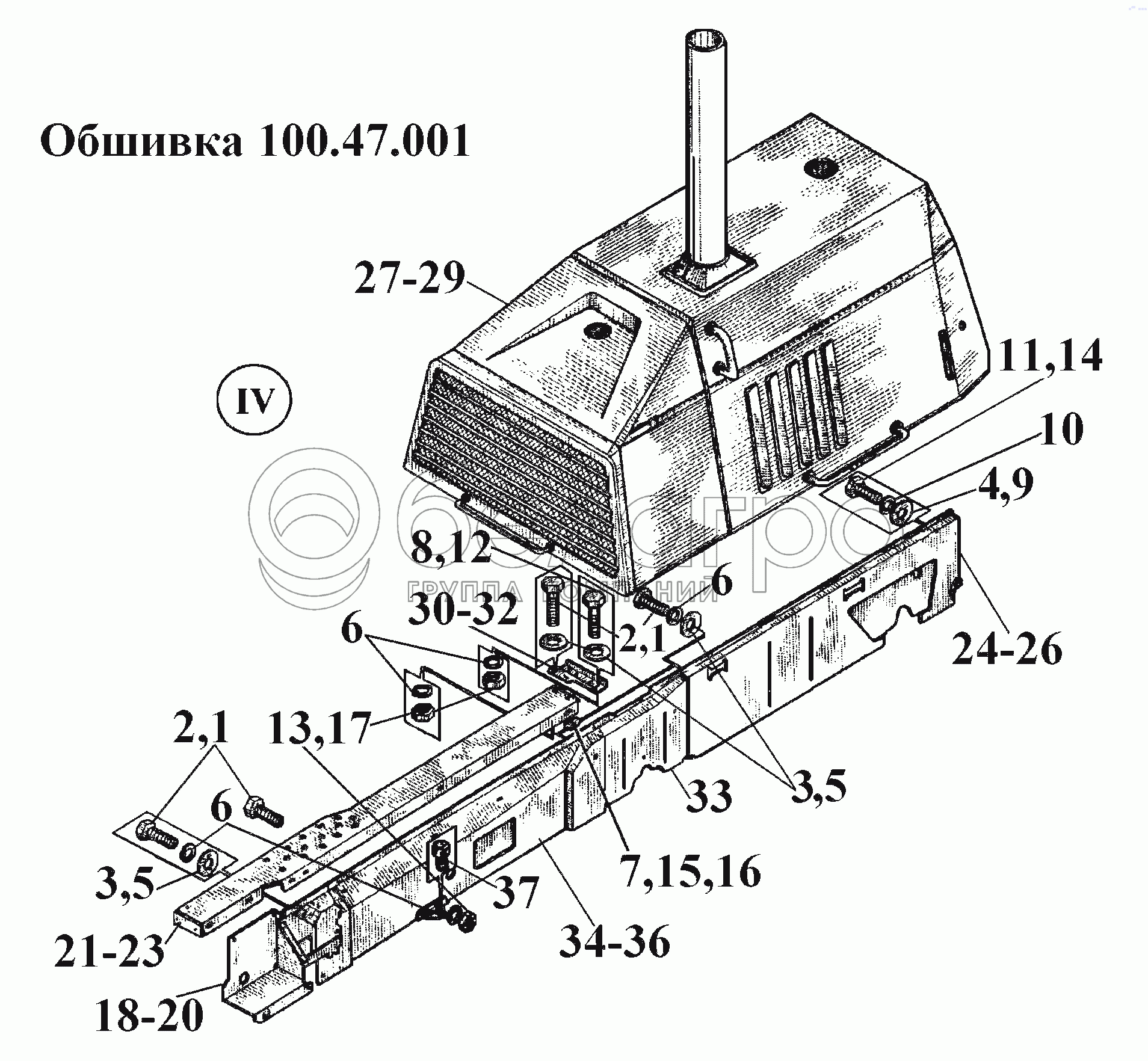 Каталог запасных частей к технике: ВгТЗ ВТ-100Д. Обшивка 100.47.001 (5)
