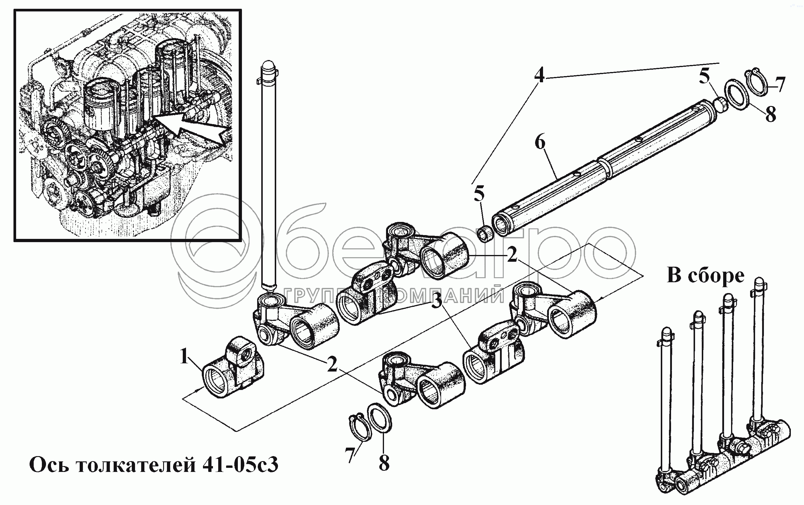 Каталог запасных частей к технике: ВгТЗ ВТ-100Д. Ось толкателей 41-05с3