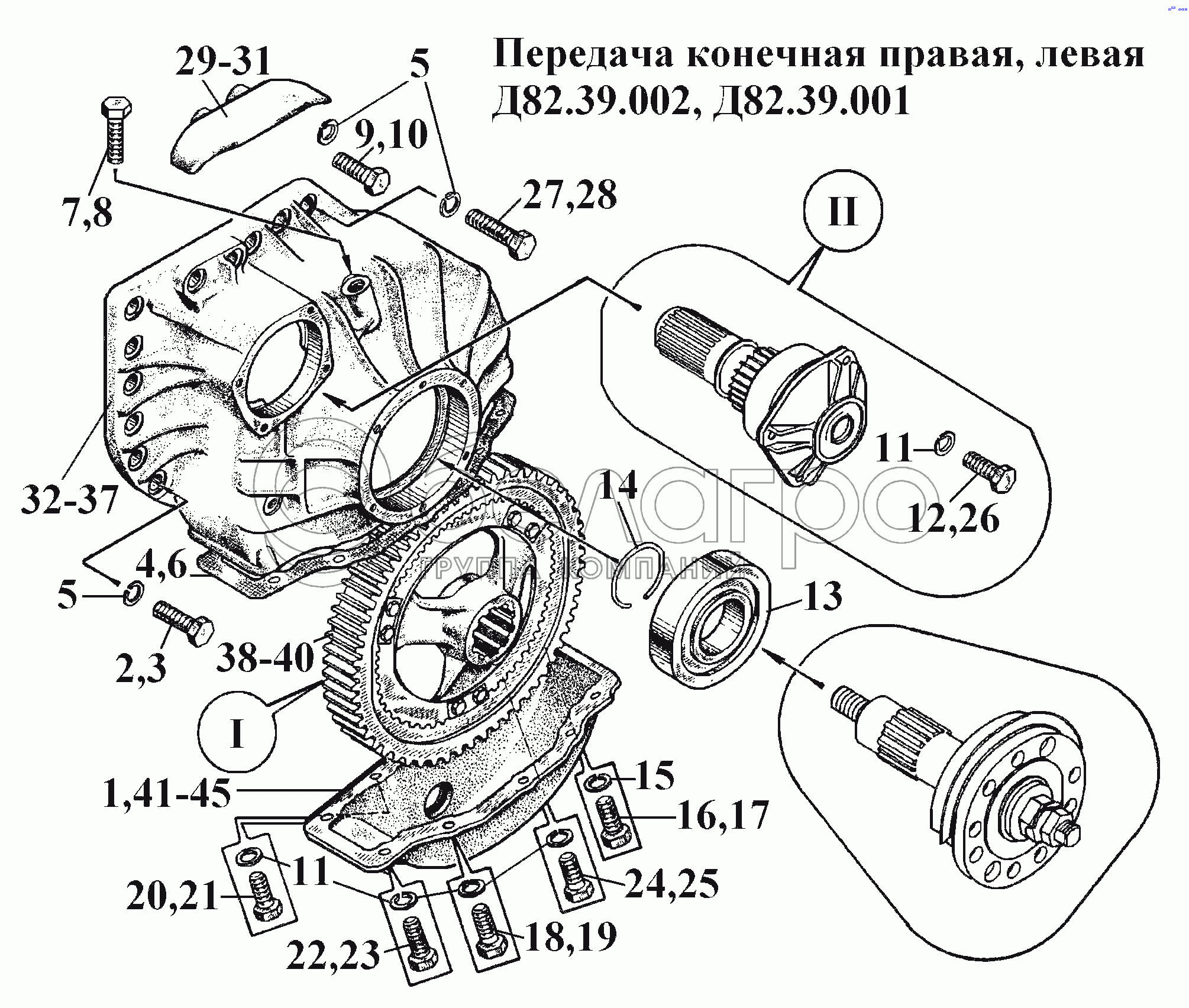 Каталог запасных частей к технике: ВгТЗ ВТ-100Д. Передача конечная правая, левая (1)