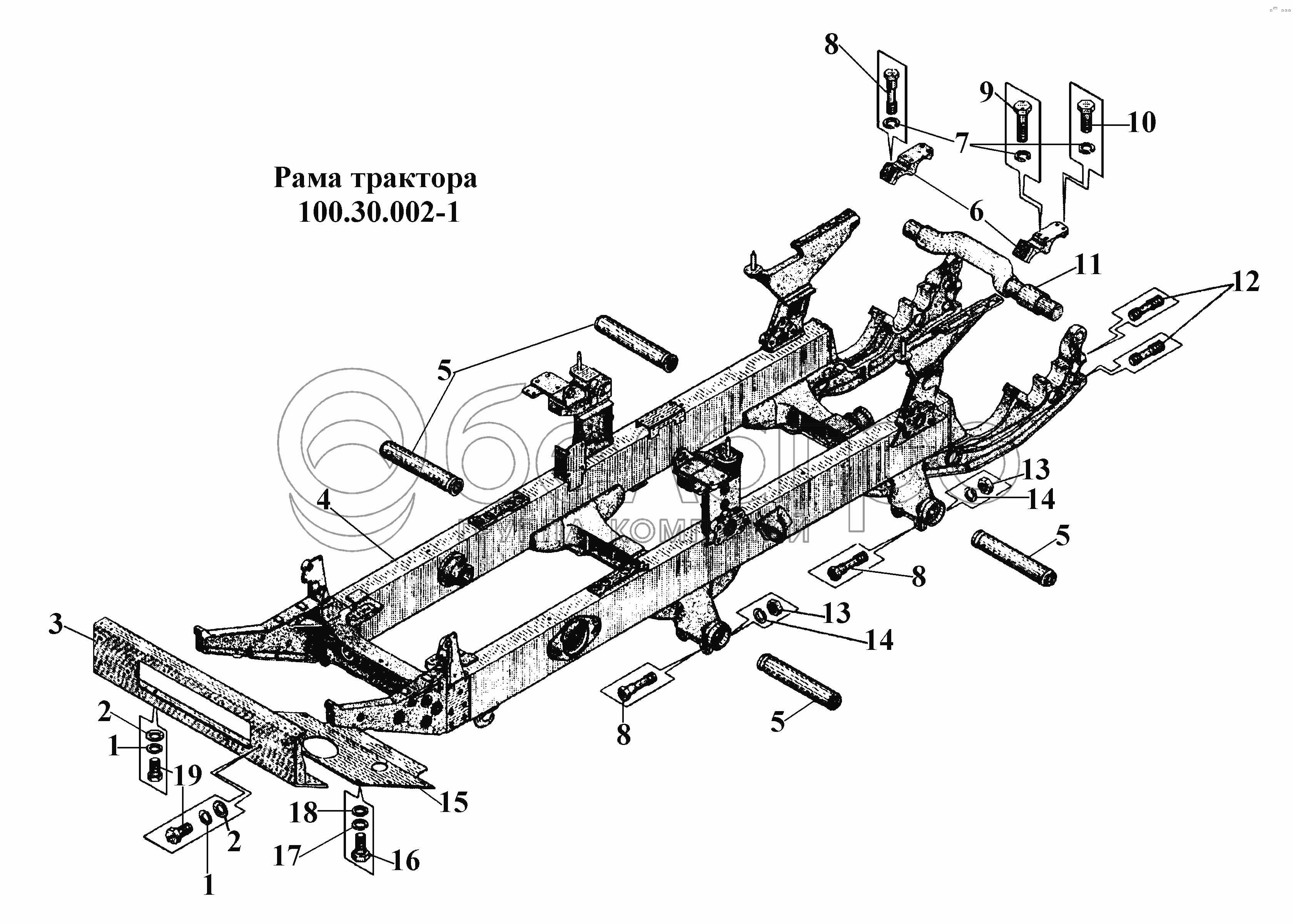 Каталог запасных частей к технике: ВгТЗ ВТ-100Д. Рама трактора 100.30.002-1
