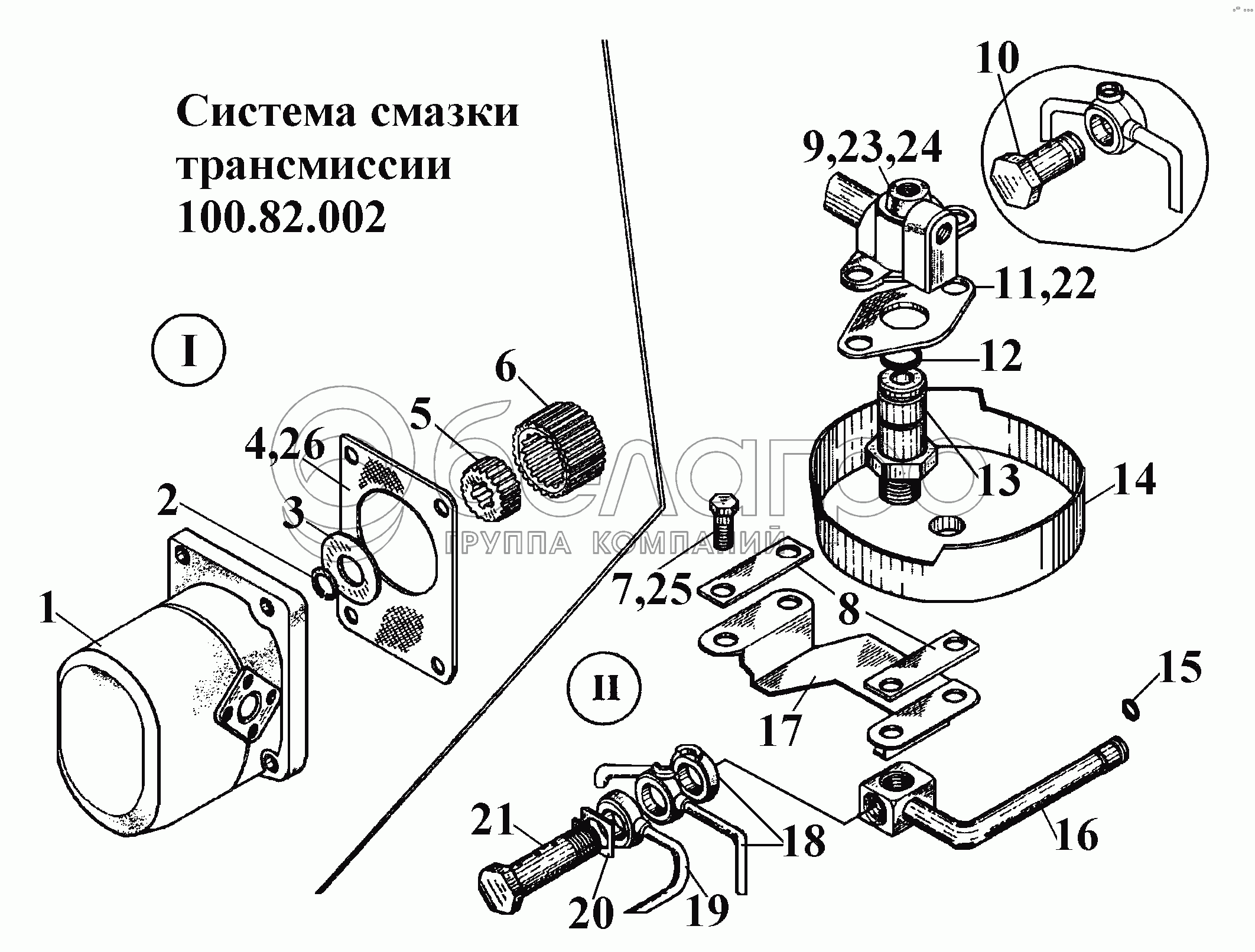 Каталог запасных частей к технике: ВгТЗ ВТ-100Д. Система смазки трансмиссии 100.82.002 (2)