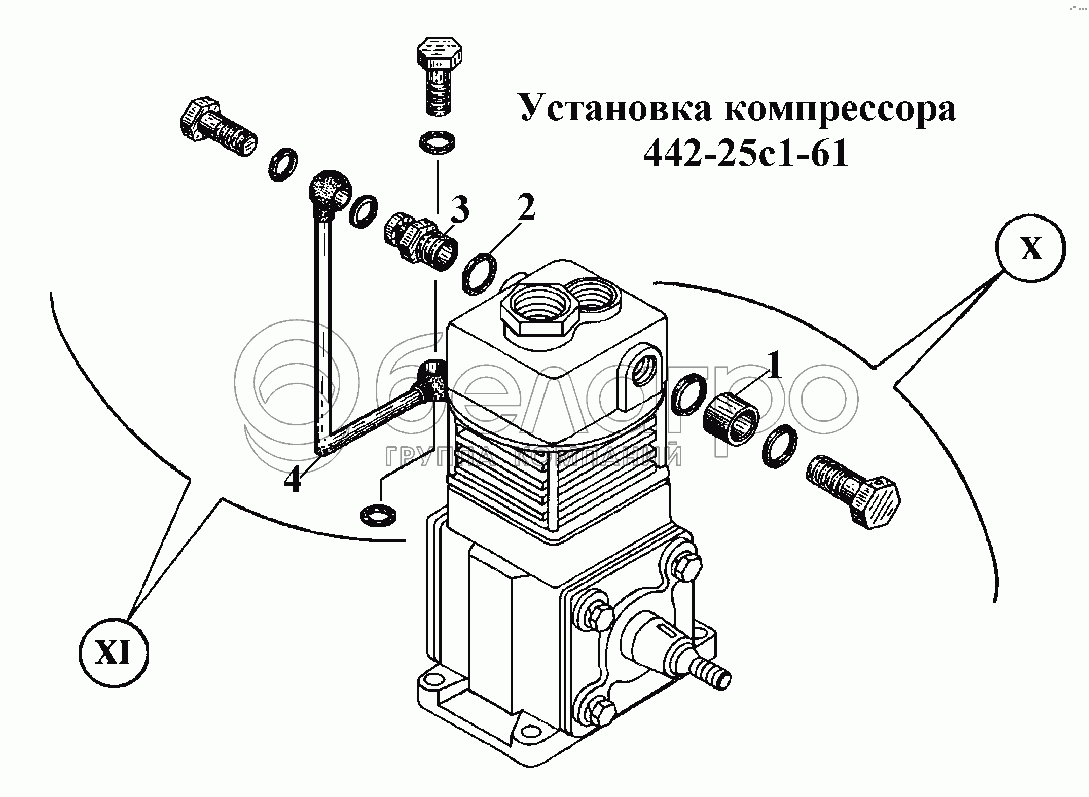 Каталог запасных частей к технике: ВгТЗ ВТ-100Д. Установка компрессора 442-25с1-61