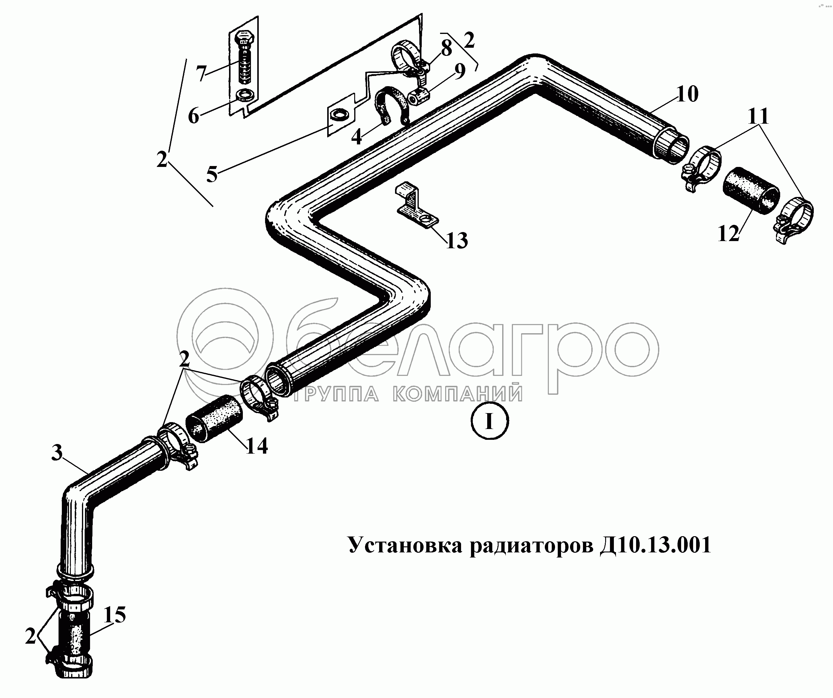 Каталог запасных частей к технике: ВгТЗ ВТ-100Д. Установка радиаторов Д10.13.001 (2)