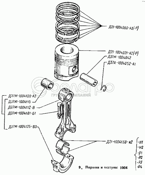 Каталог запасных частей к технике: ВТЗ Т-25А. Поршни и шатуны