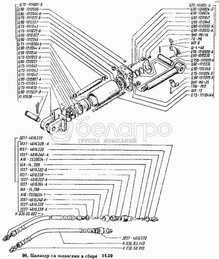 Каталог запасных частей к технике: ВТЗ Т-25А. Цилиндр со шлангами в сборе