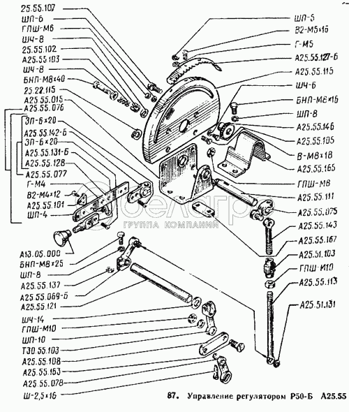 Каталог запасных частей к технике: ВТЗ Т-25А. Управление регулятором Р50-Б