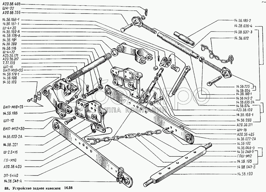 Каталог запасных частей к технике: ВТЗ Т-25А. Устройство заднее навесное