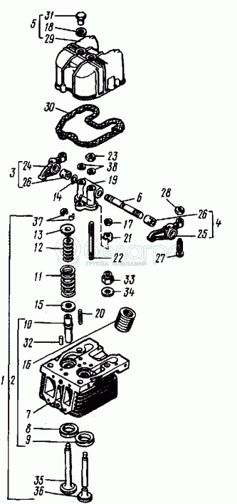 Каталог запасных частей к технике: ВТЗ Т-30A-80. Головка цилиндра Клапаны и толкатели клапанов