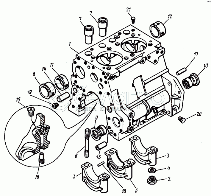 Каталог запасных частей к технике: ВТЗ Т-30A-80. Остов двигателя (картер Д21-1002010А)