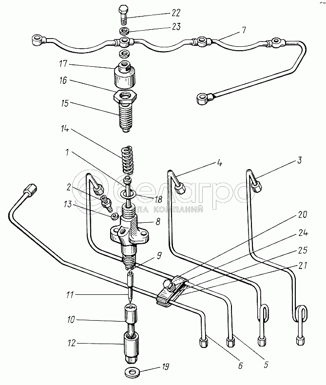 Каталог запасных частей к технике: ЮМЗ-6КЛ, (6КМ). Форсунка и топливопроводы