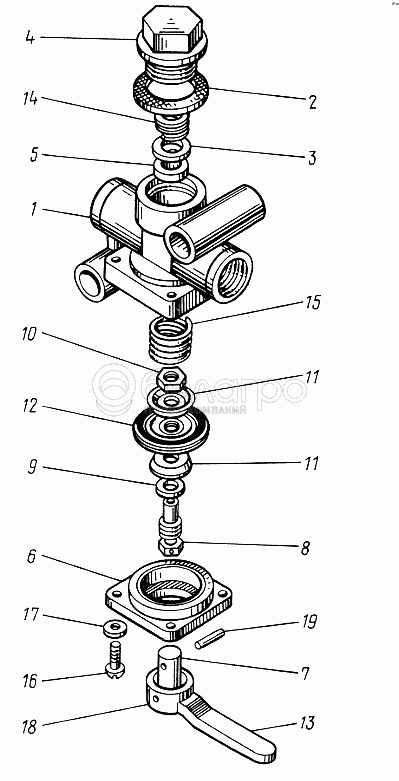 Каталог запасных частей к технике: ЮМЗ-6КЛ, (6КМ). Кран разобщительный