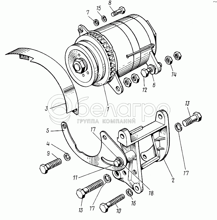 Каталог запасных частей к технике: ЮМЗ-6КЛ, (6КМ). Установка генератора