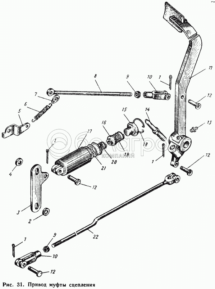 Каталог запасных частей к технике: ЮМЗ-6Л. Привод муфты сцепления