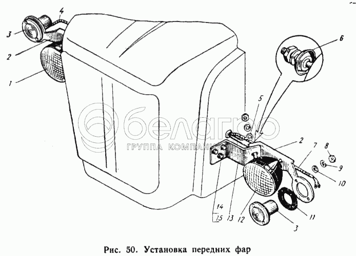 Каталог запасных частей к технике: ЮМЗ-6Л. Установка передних фар