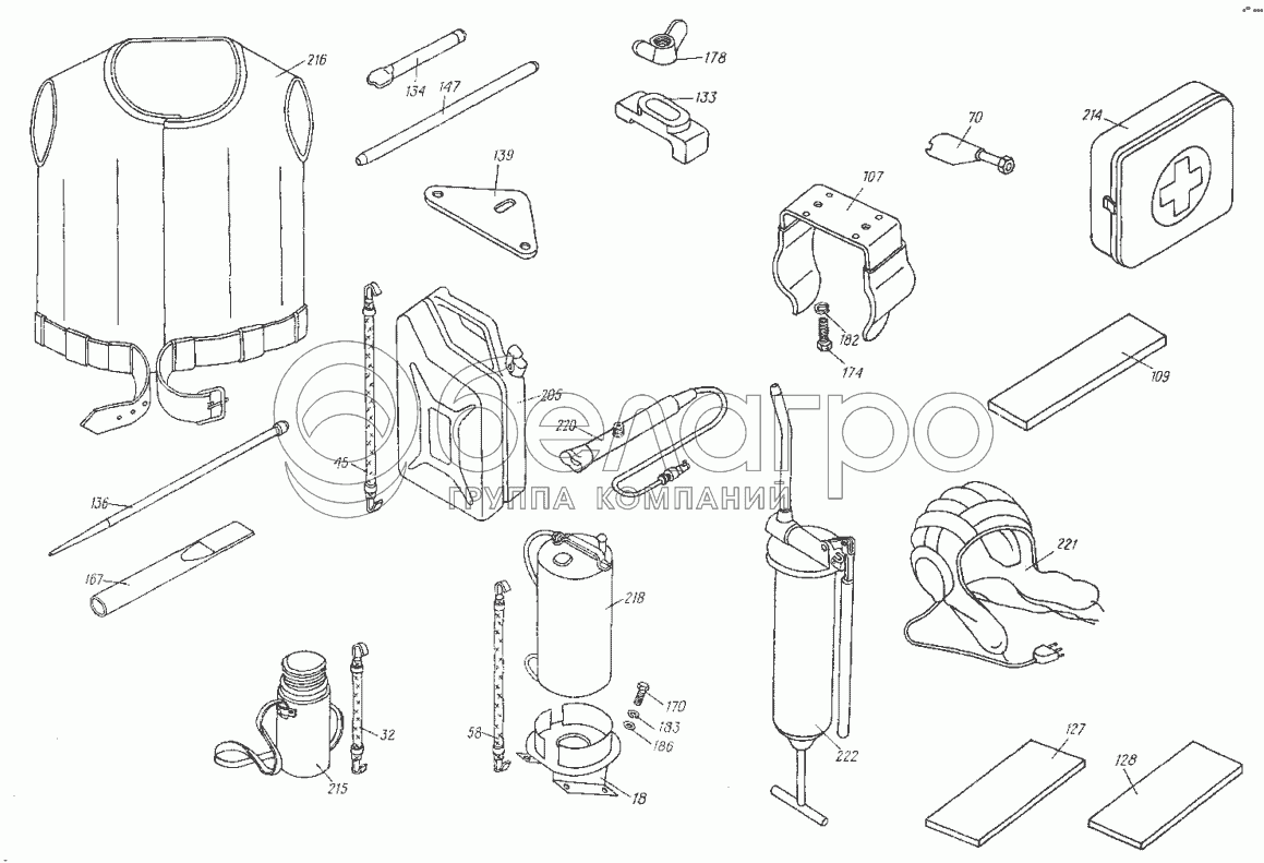 Каталог запасных частей к технике: ХТЗ МТ-ЛБ. Инструмент и принадлежности. Укладка 6.61.001