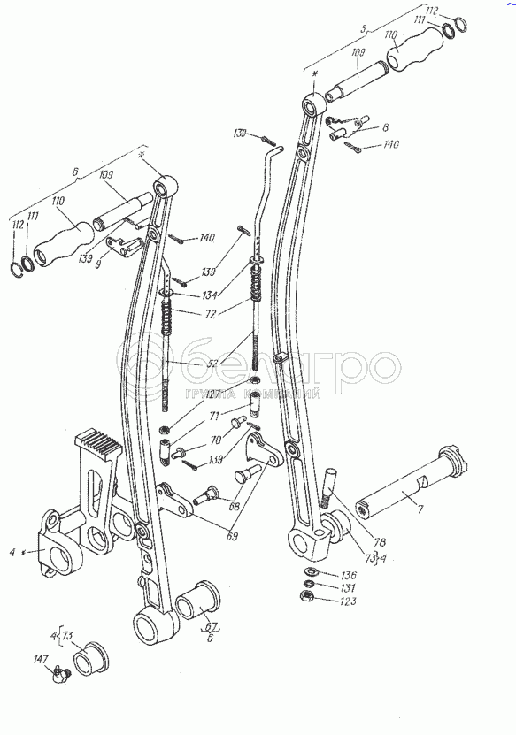 Каталог запасных частей к технике: ХТЗ МТ-ЛБ. Кронштейн рычагов в сборе 6.22.010