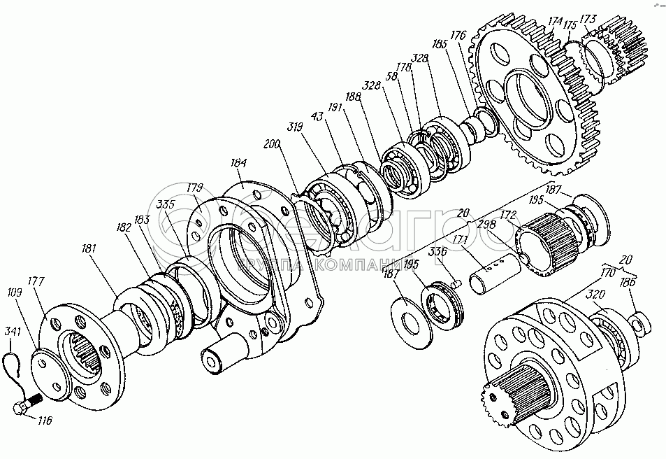 Каталог запасных частей к технике: ХТЗ МТ-ЛБ. Механизм поворота левый 8.10.040