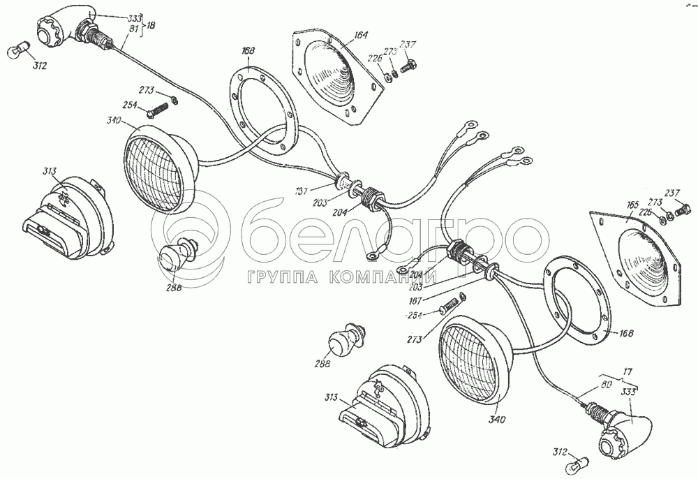 Каталог запасных частей к технике: ХТЗ МТ-ЛБ. Установка фар и подфарников 5.50.031