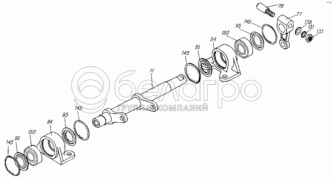 Каталог запасных частей к технике: ХТЗ МТ-ЛБ. Вал промежуточный в сборе 6.22.020