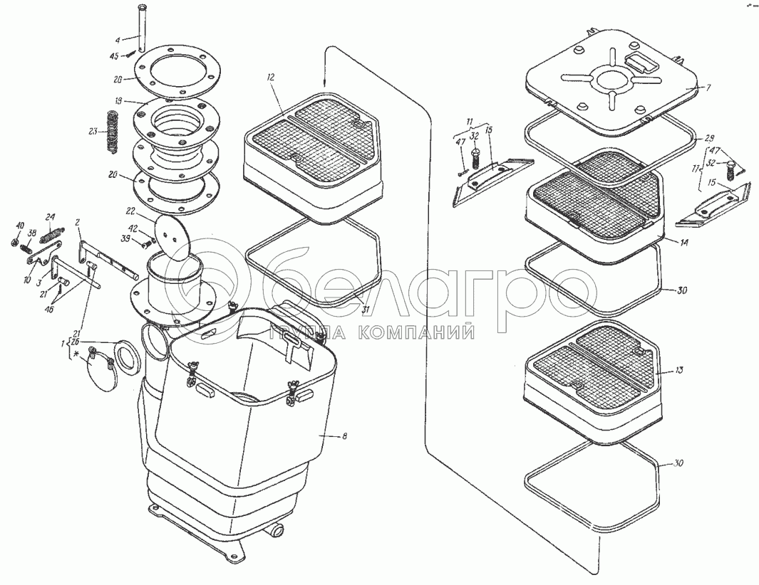 Каталог запасных частей к технике: ХТЗ МТ-ЛБ. Воздухоочиститель в сборе 8.09.028-1А
